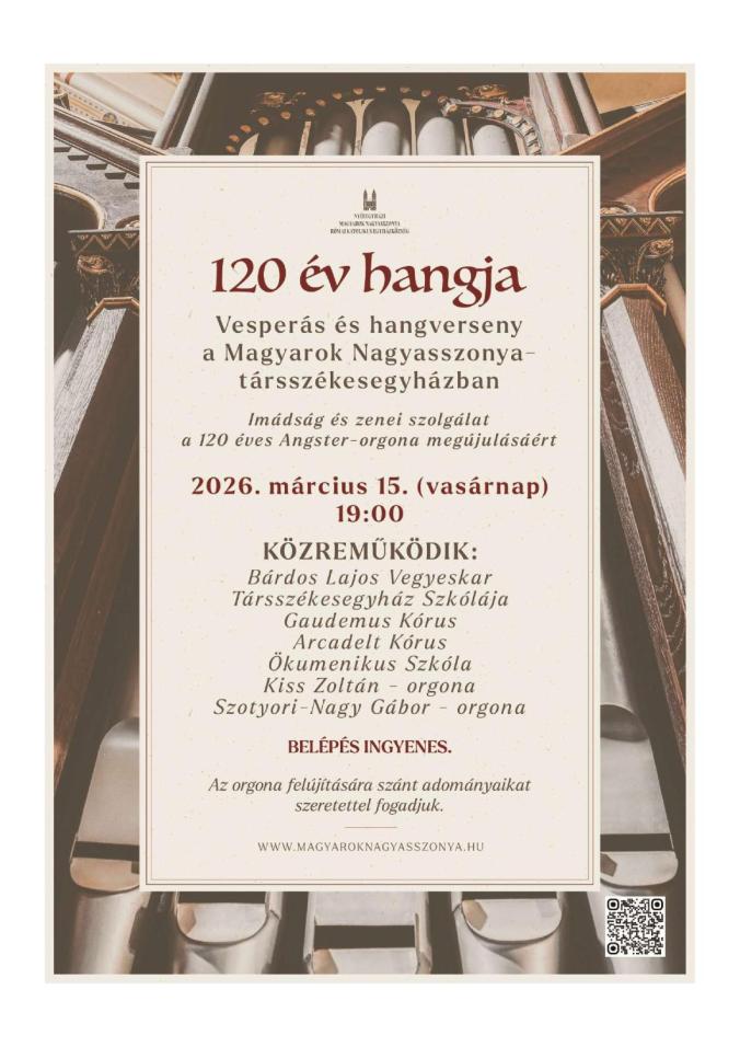 120 év hangja - koncert a Gaudemus Kórus közerműködésével Közzétéve: 2026. 03. 15., v – 10:35 Tovább (120 év hangja - koncert a Gaudemus Kórus közerműködésével)