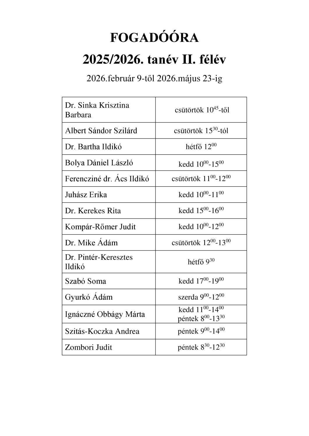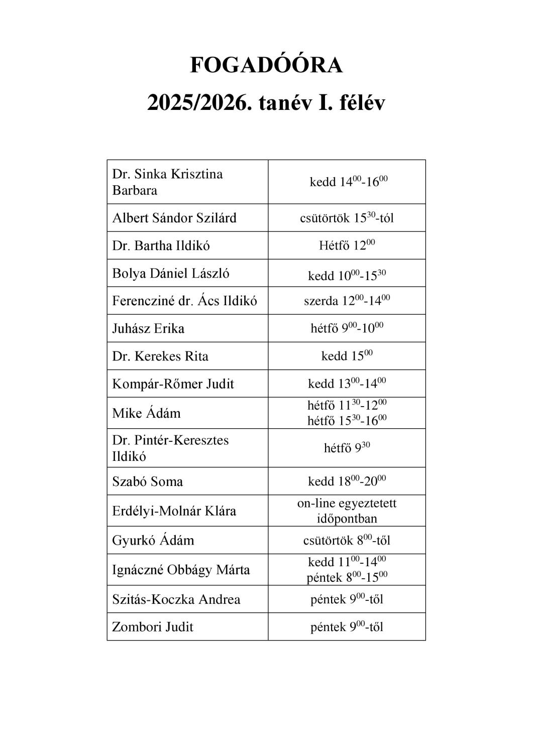 Fogadóórák